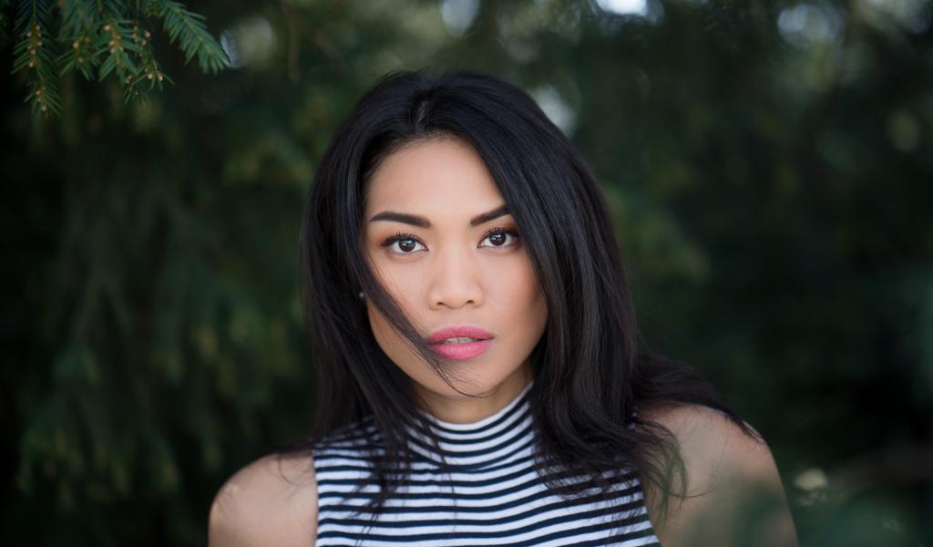 Wallpaper Beautiful blue-eyed girl with long black hair