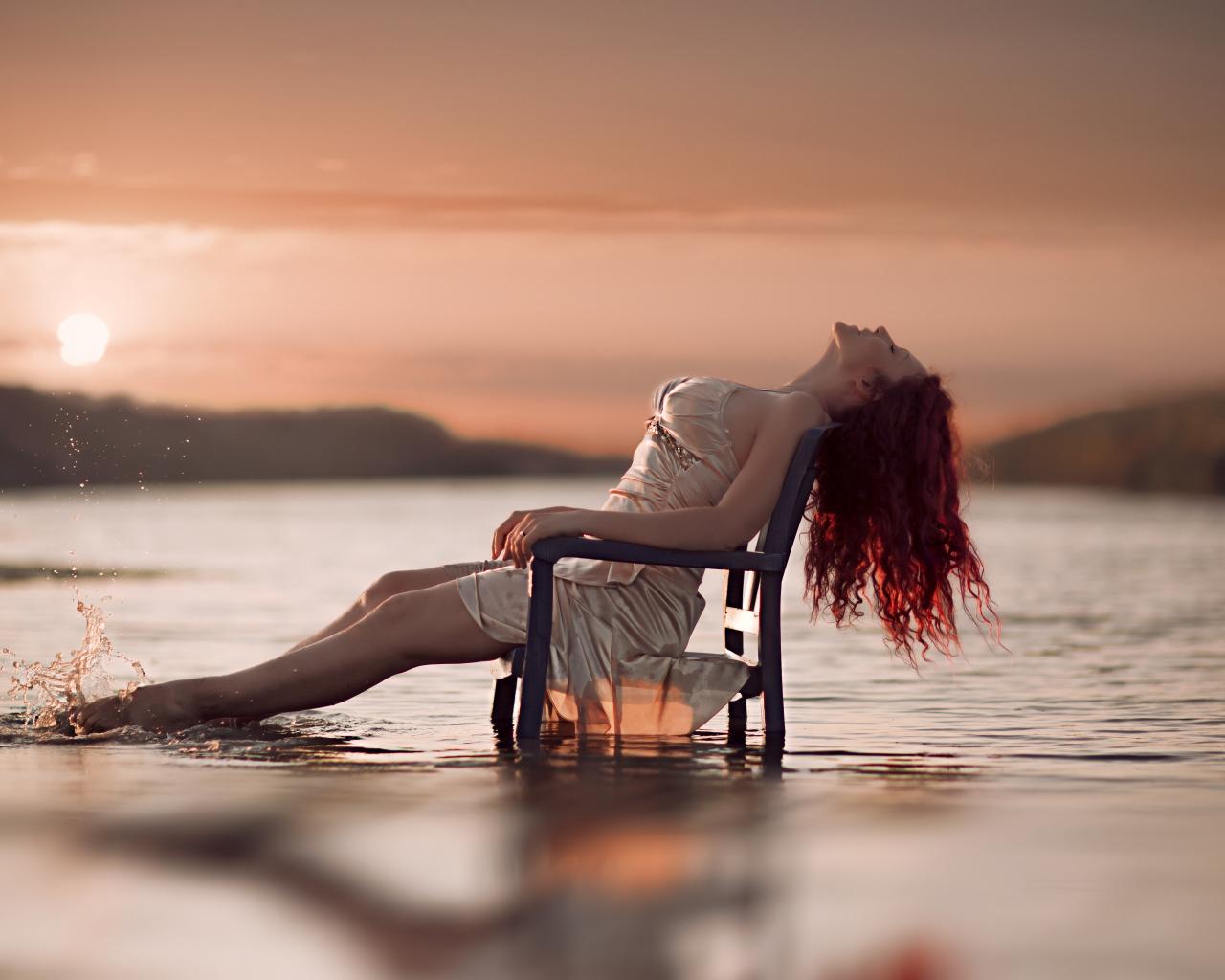 Wallpaper Beautiful red-haired girl on a chair in the water