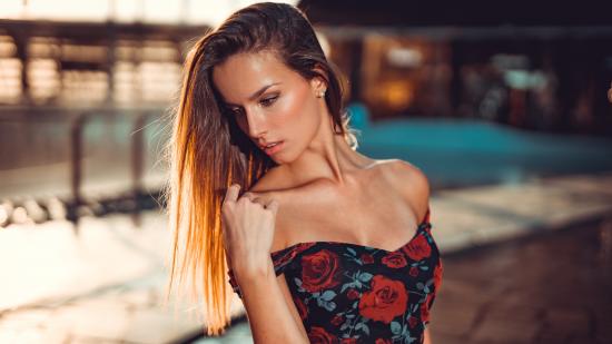 Wallpaper Beautiful long-haired brunette in a dress
