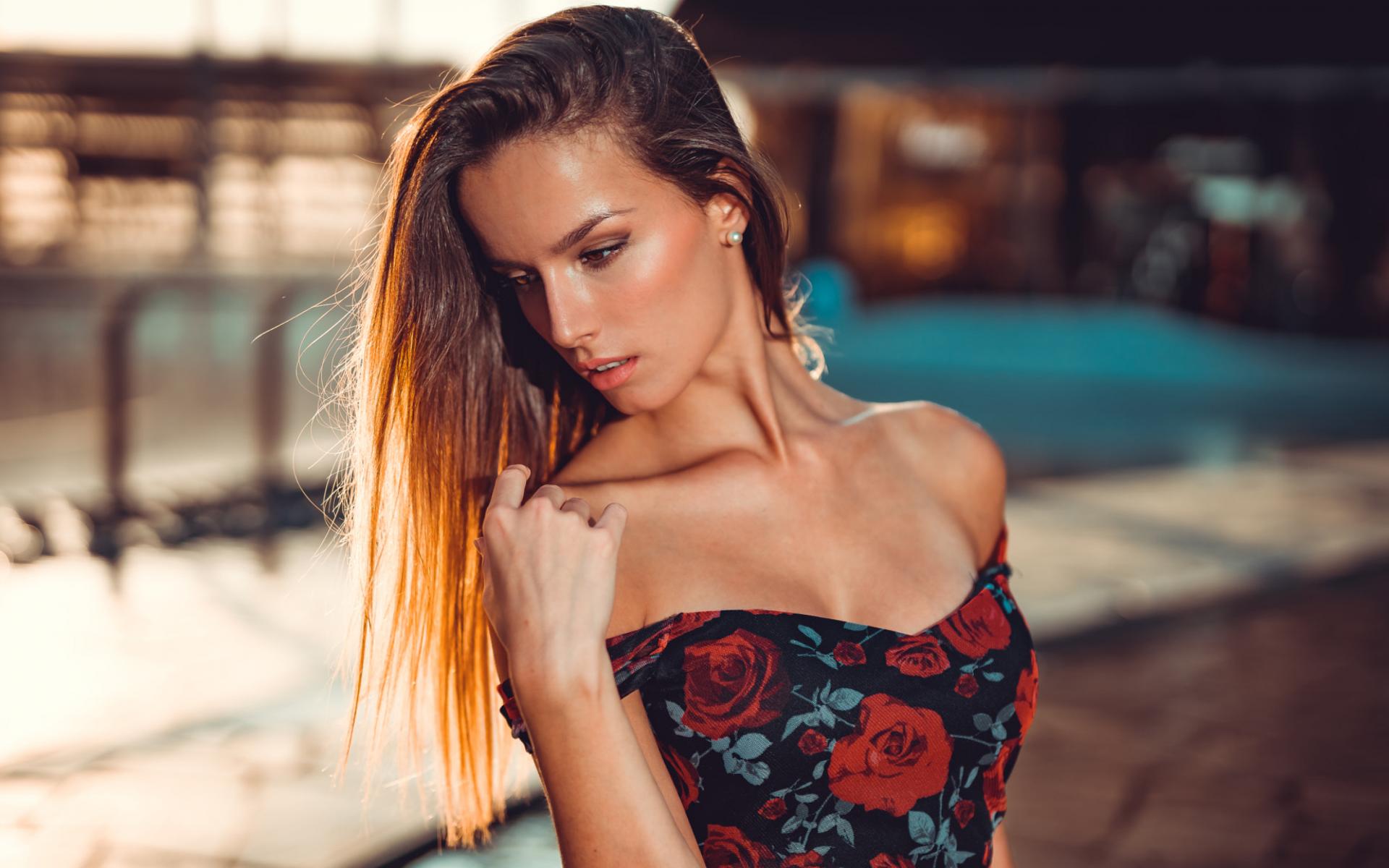 Wallpaper Beautiful long-haired brunette in a dress