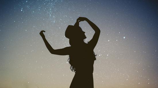 Wallpaper Silhouette of a girl in a hat on a sky background