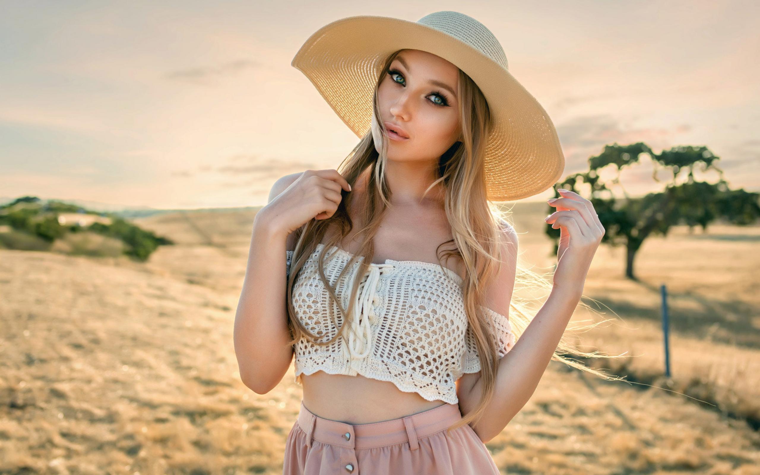 Wallpaper Beautiful blond girl in a big hat