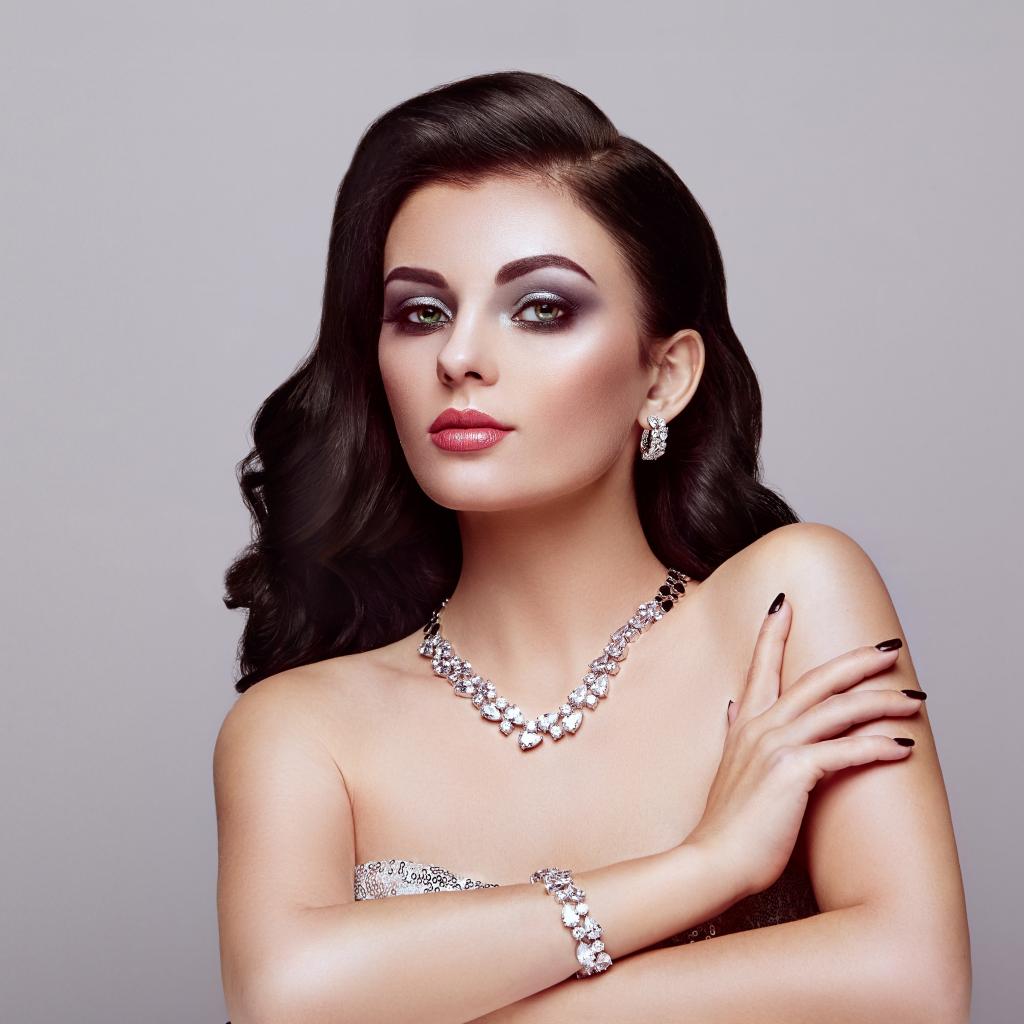 Wallpaper Beautiful bright brunette on a gray background