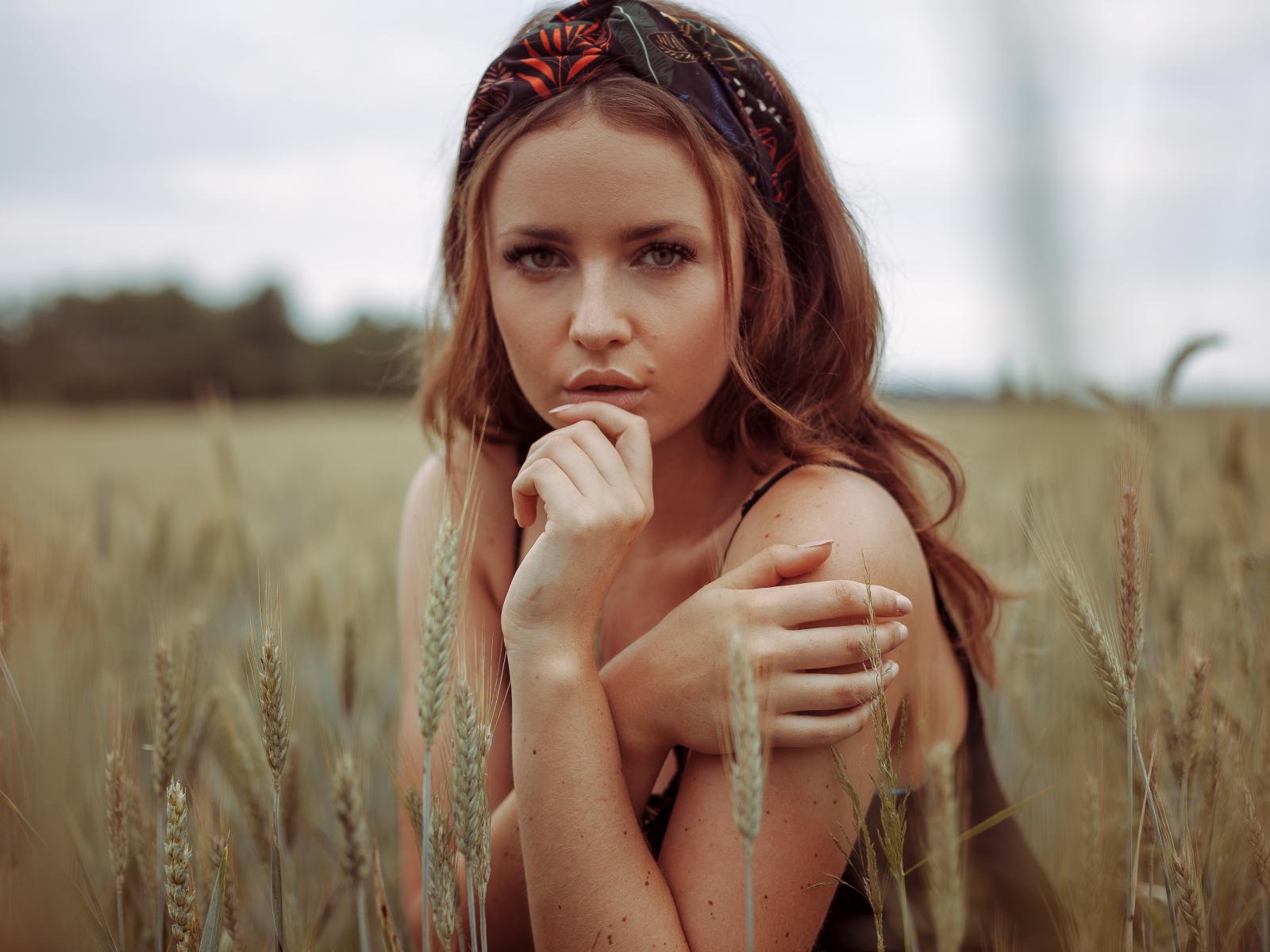 Wallpaper Beautiful red-haired girl on a field with wheat