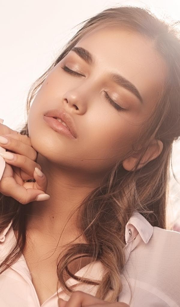Wallpaper Dreamy brown-haired girl with closed eyes