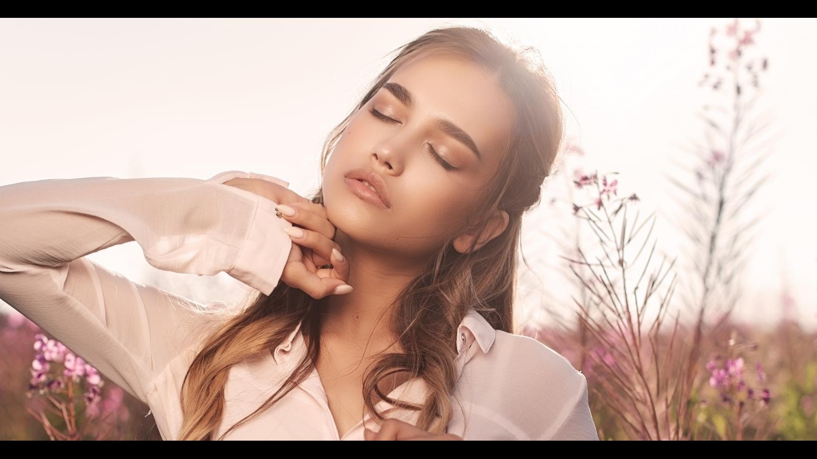 Wallpaper Dreamy brown-haired girl with closed eyes