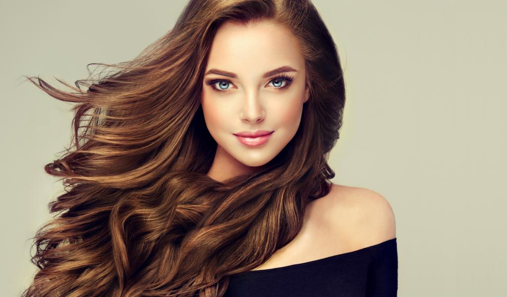 Wallpaper Young blue-eyed girl with beautiful long hair