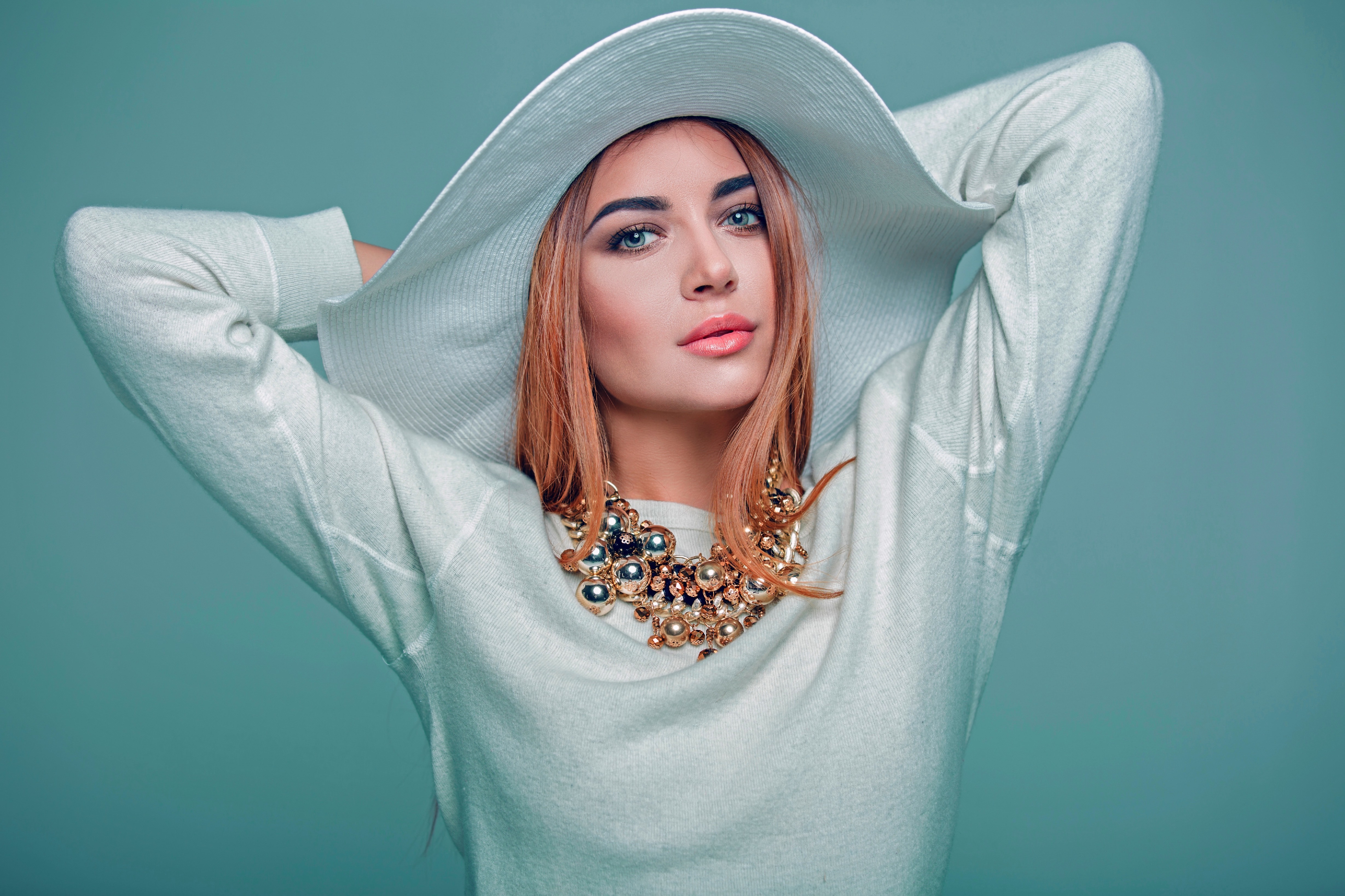 Wallpaper Beautiful girl model in white attire