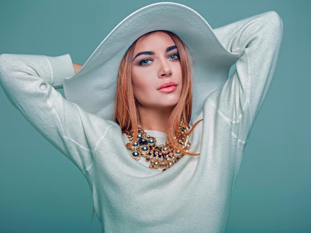 Wallpaper Beautiful girl model in white attire