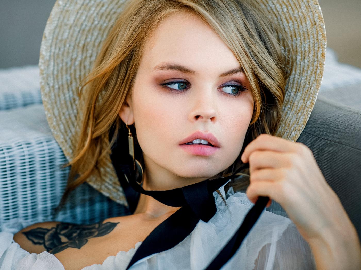 Wallpaper Beautiful blonde with a tattoo on her forehead