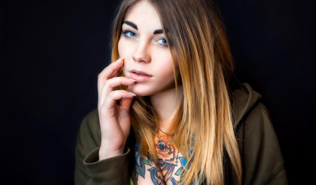 Wallpaper Beautiful blue-eyed girl with a tattoo