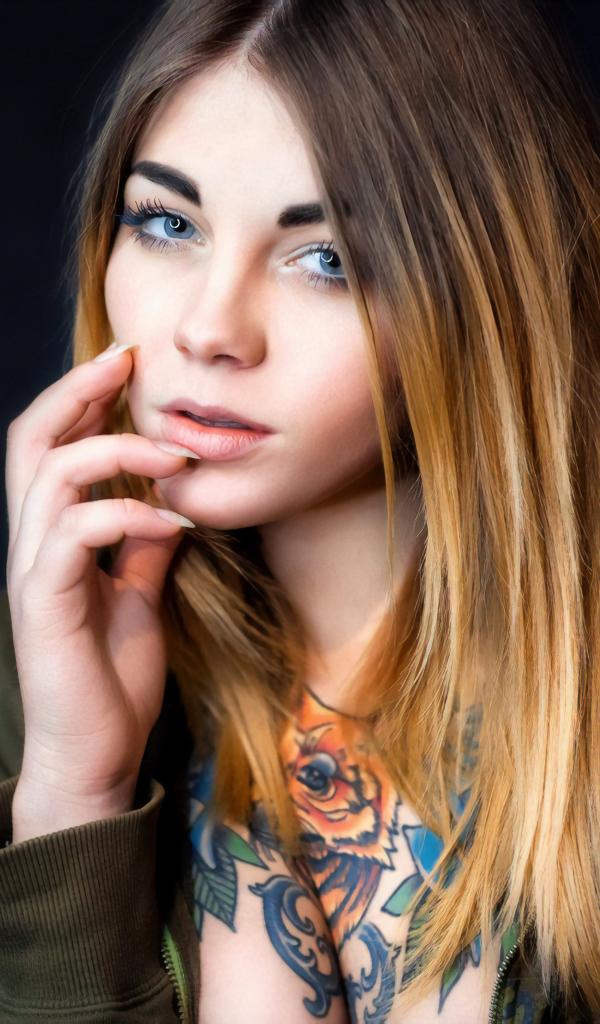Wallpaper Beautiful blue-eyed girl with a tattoo