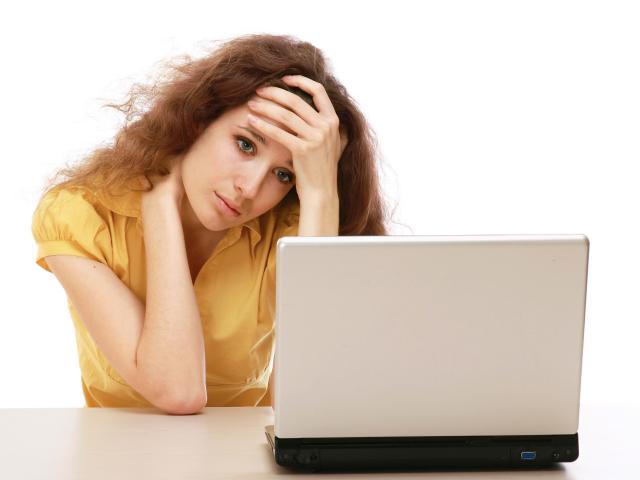 Wallpaper Sad girl sitting near laptop