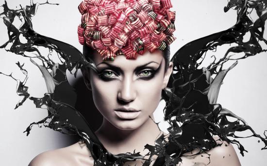 Wallpaper Beautiful girl with makeup in black paint splashes