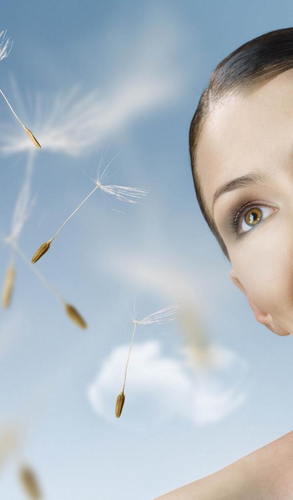 Wallpaper Happy girl with dandelion in hand