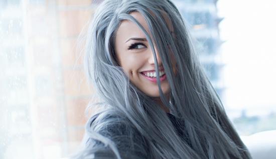 Wallpaper Smiling screaming girl with piercing