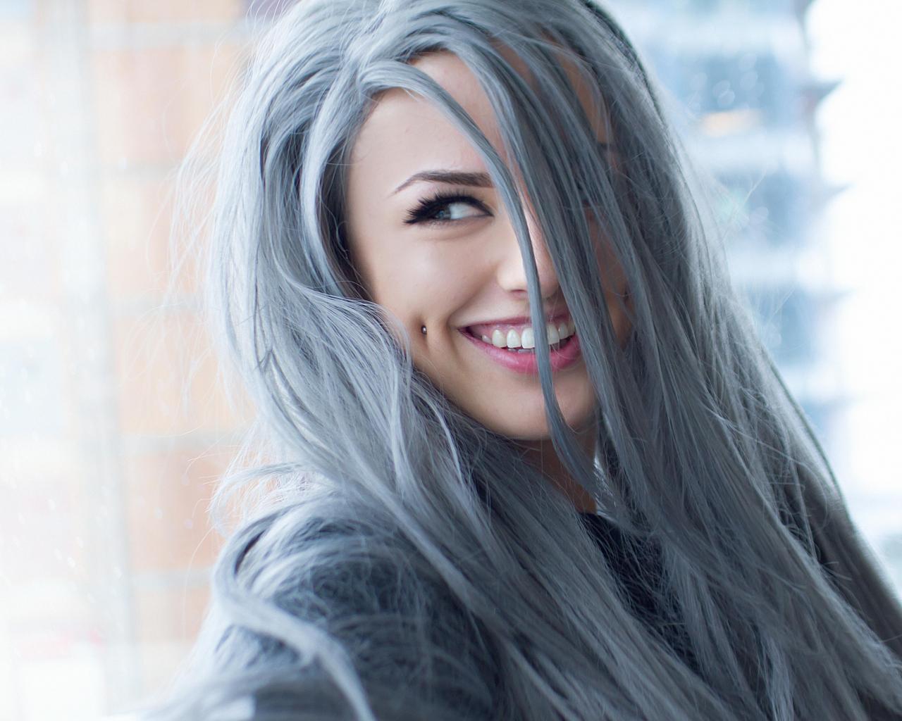 Wallpaper Smiling screaming girl with piercing