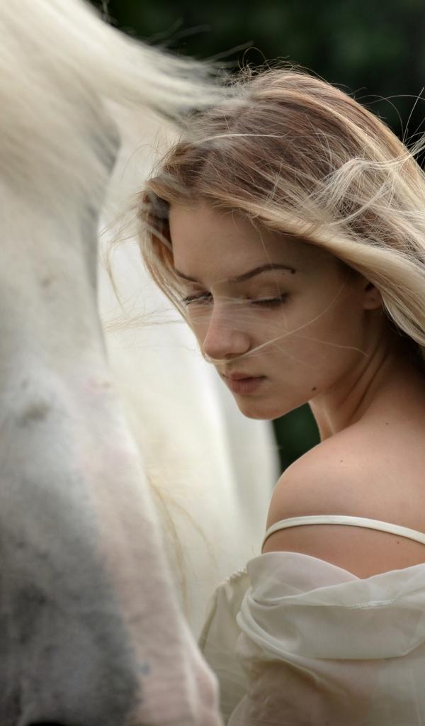 Wallpaper Beautiful long-haired blonde with a horse