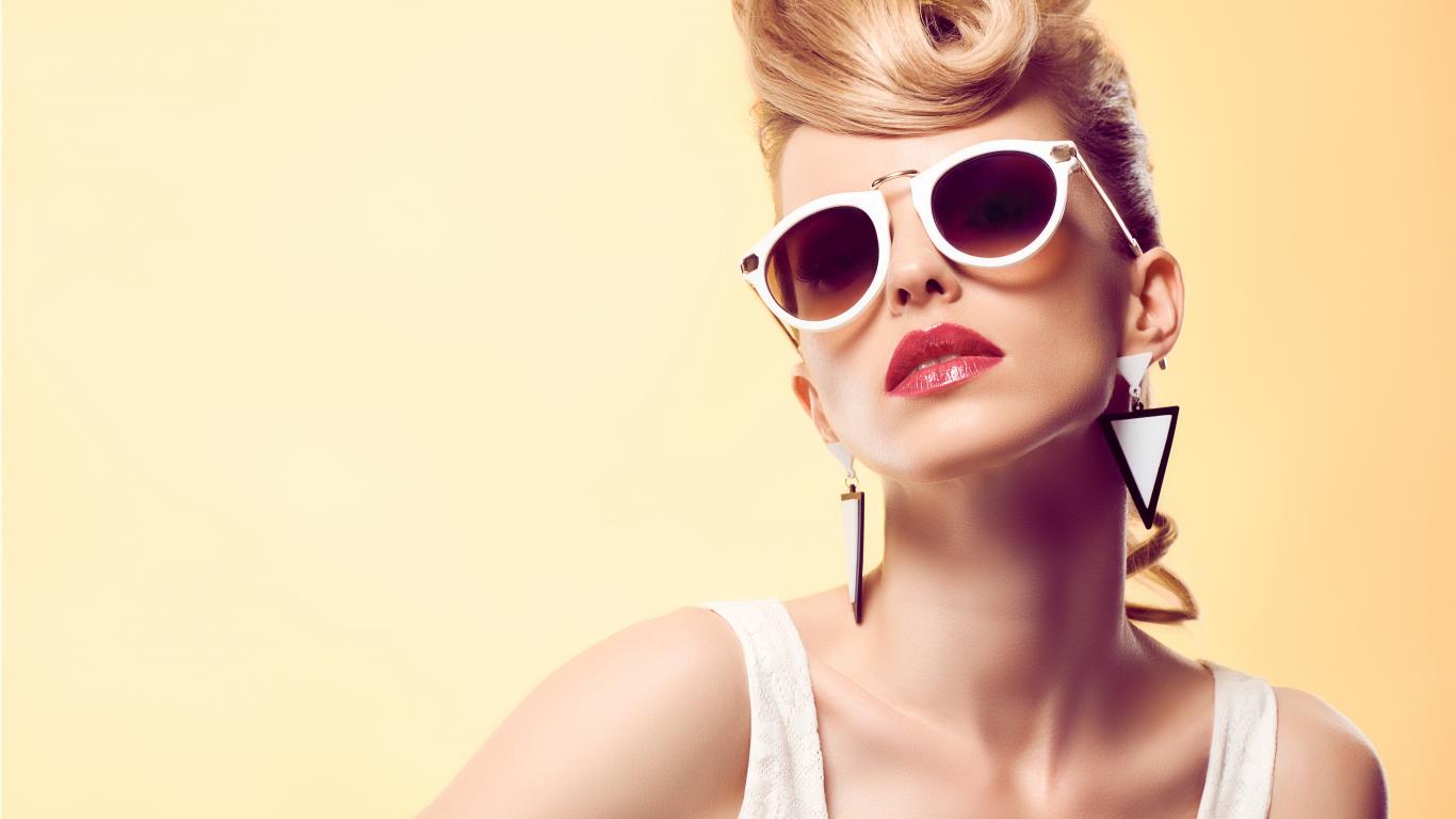 Wallpaper Blonde with a stylish haircut with glasses