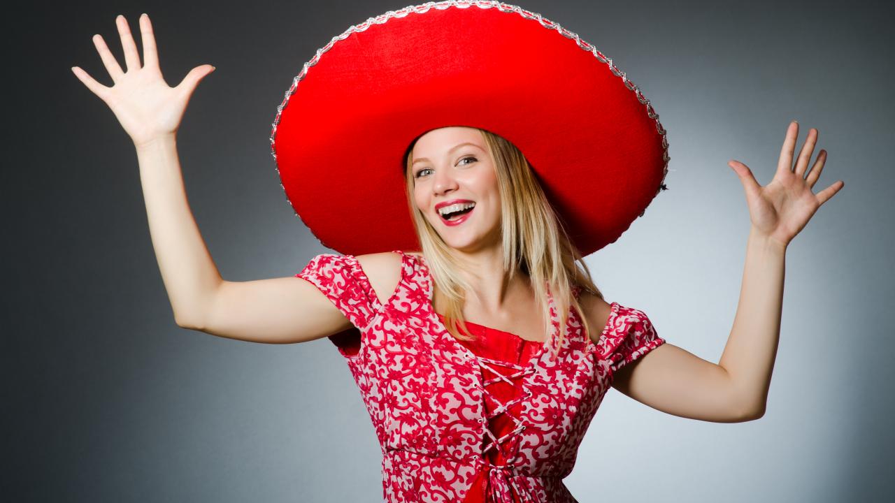 Wallpaper Beautiful smiling blonde in a big red hat