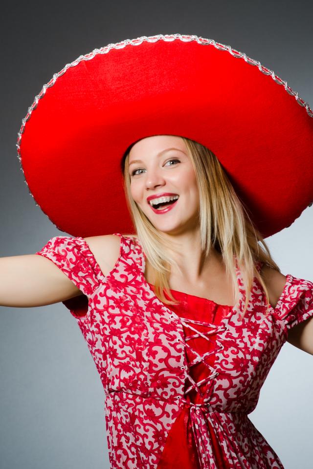 Wallpaper Beautiful smiling blonde in a big red hat