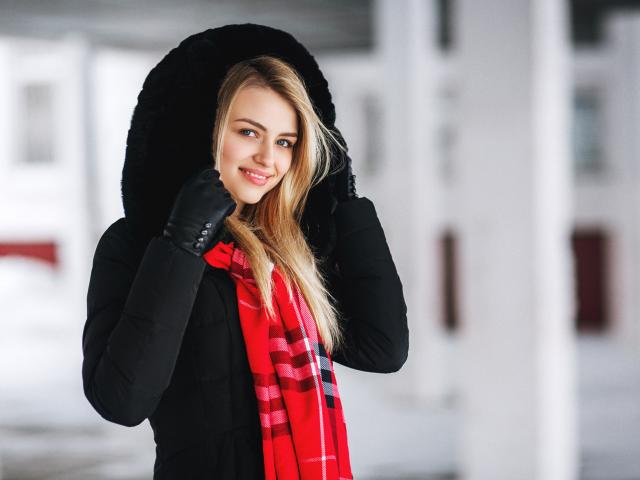 Wallpaper Fashionable smiling girl in a warm jacket