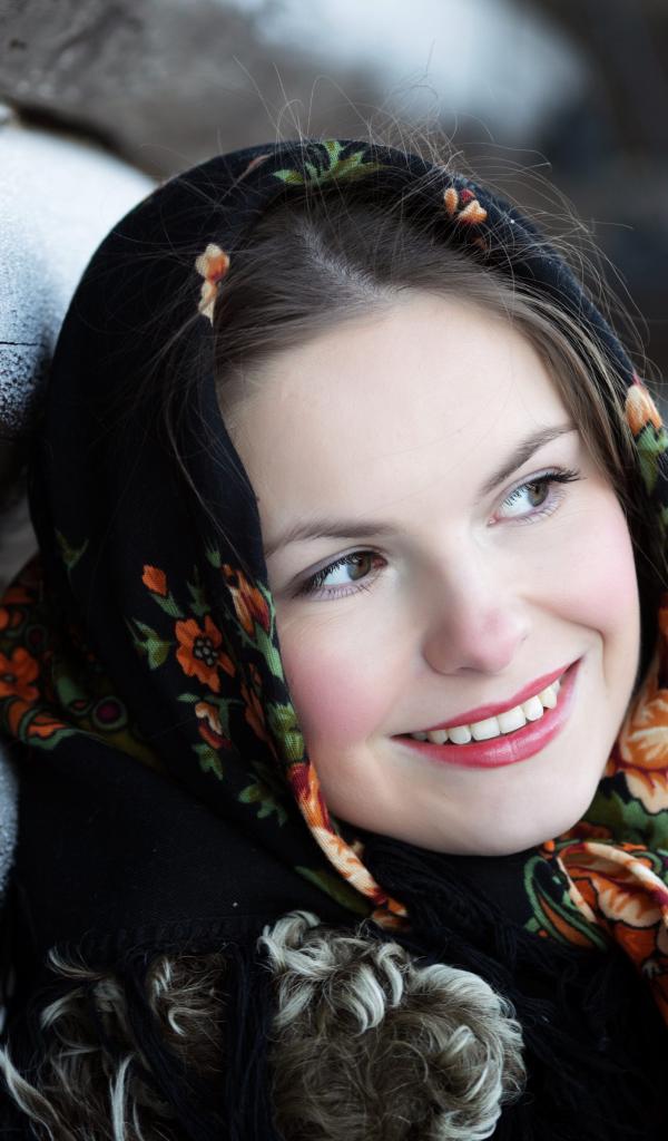 Wallpaper Beautiful Russian girl in a scarf in the winter