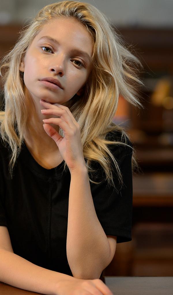 Wallpaper Tender blonde girl in library