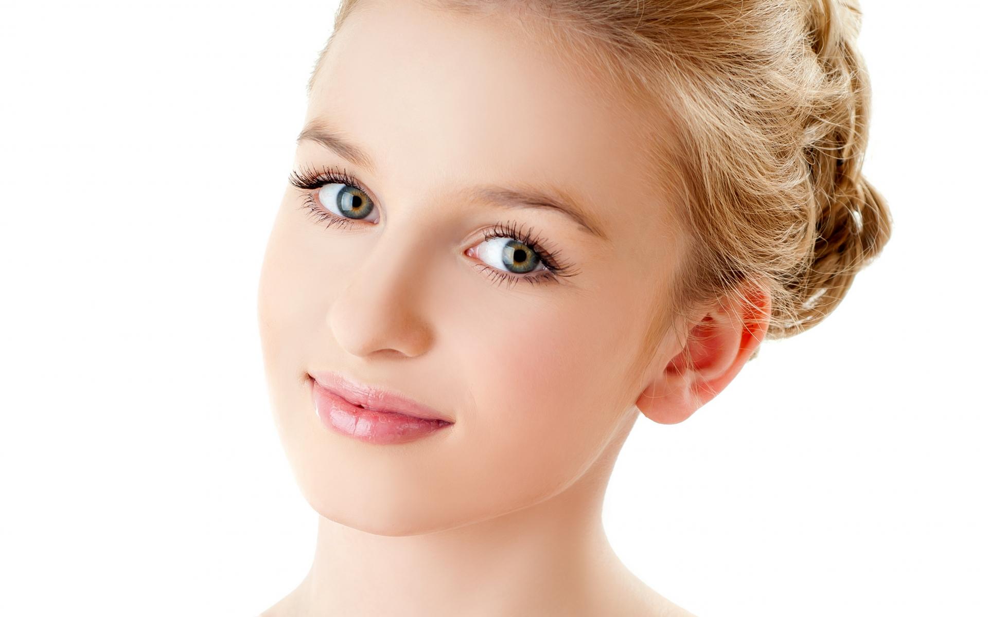 Wallpaper Tender sweet face girl close up on white background