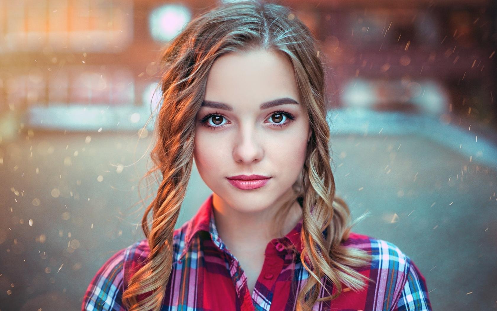 Wallpaper Beautiful brown-eyed girl with hairstyle