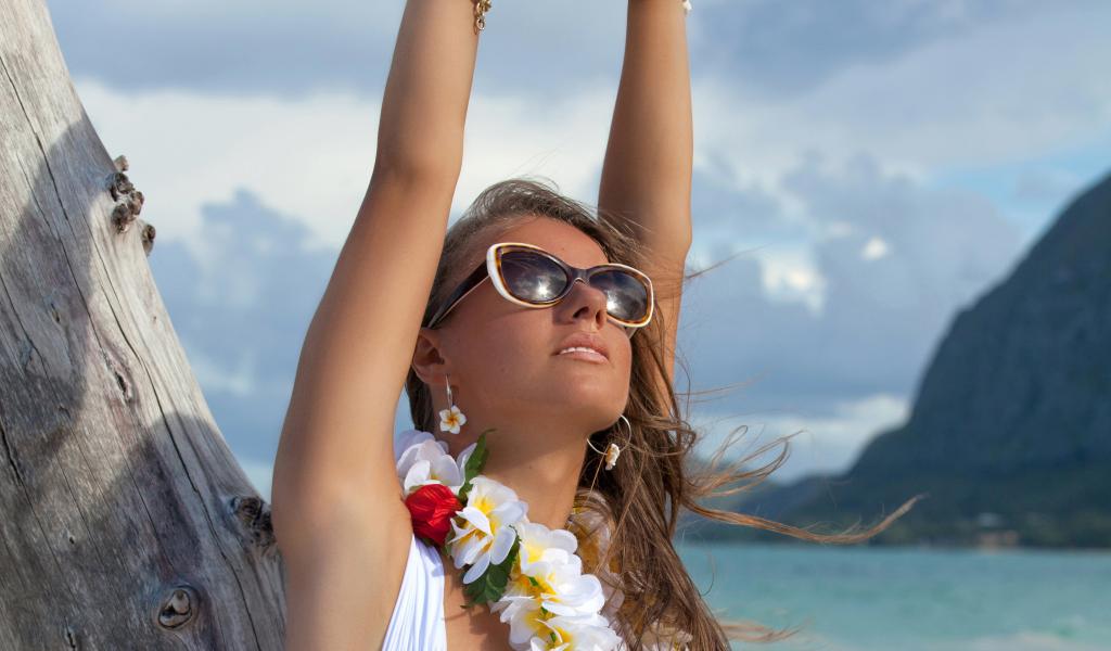» Wallpaper Beautiful girl in glasses at the resort