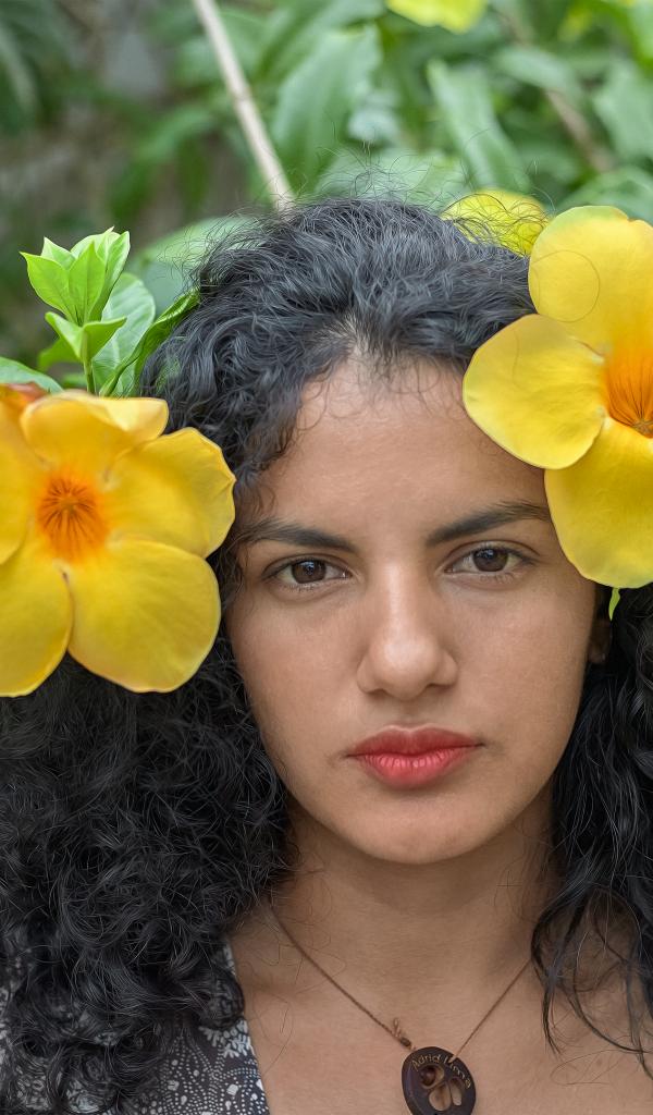Wallpaper Beautiful brunette with big yellow flowers in her hair
