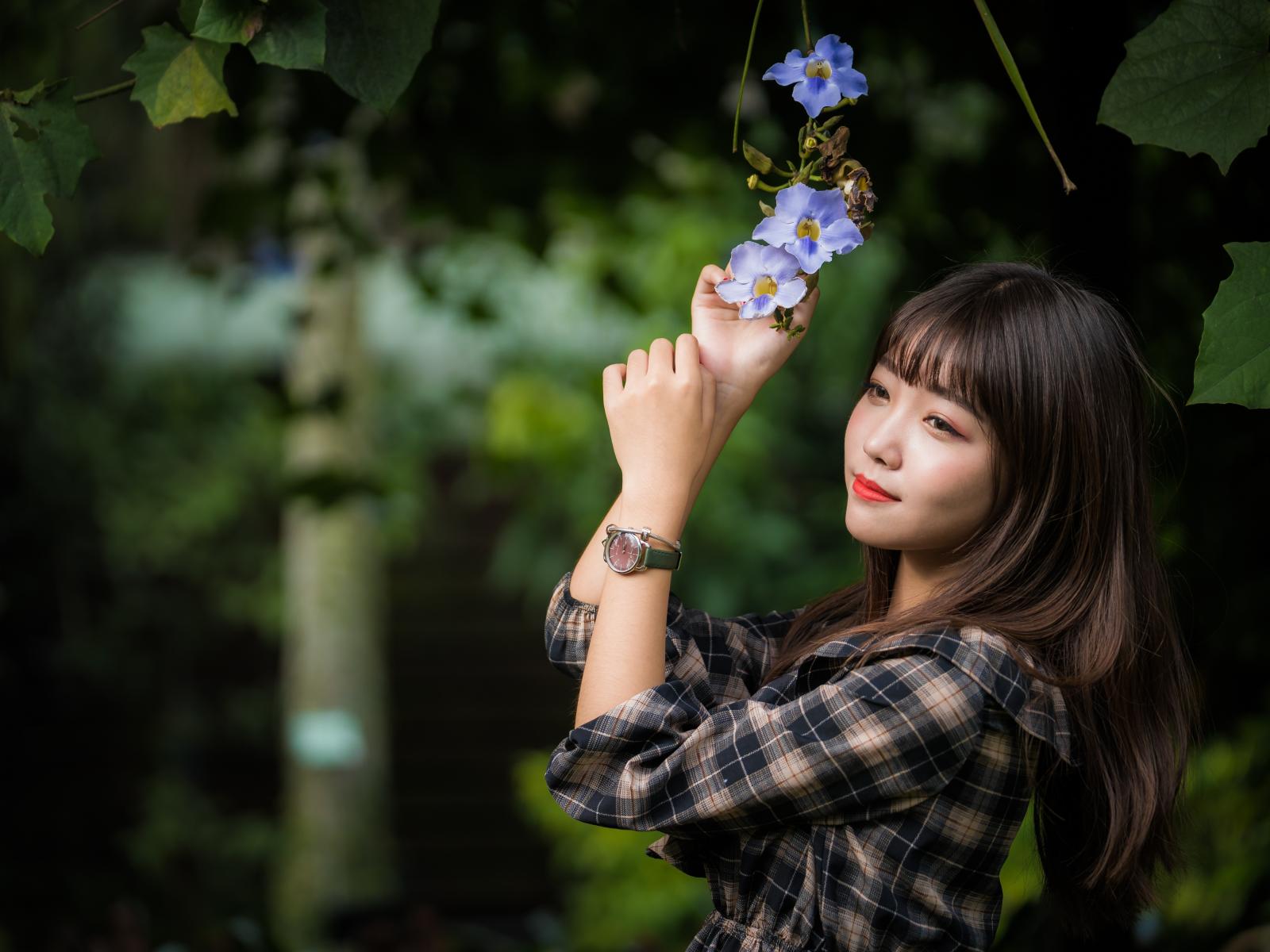 Wallpaper Beautiful asian girl with flowers hydrangea