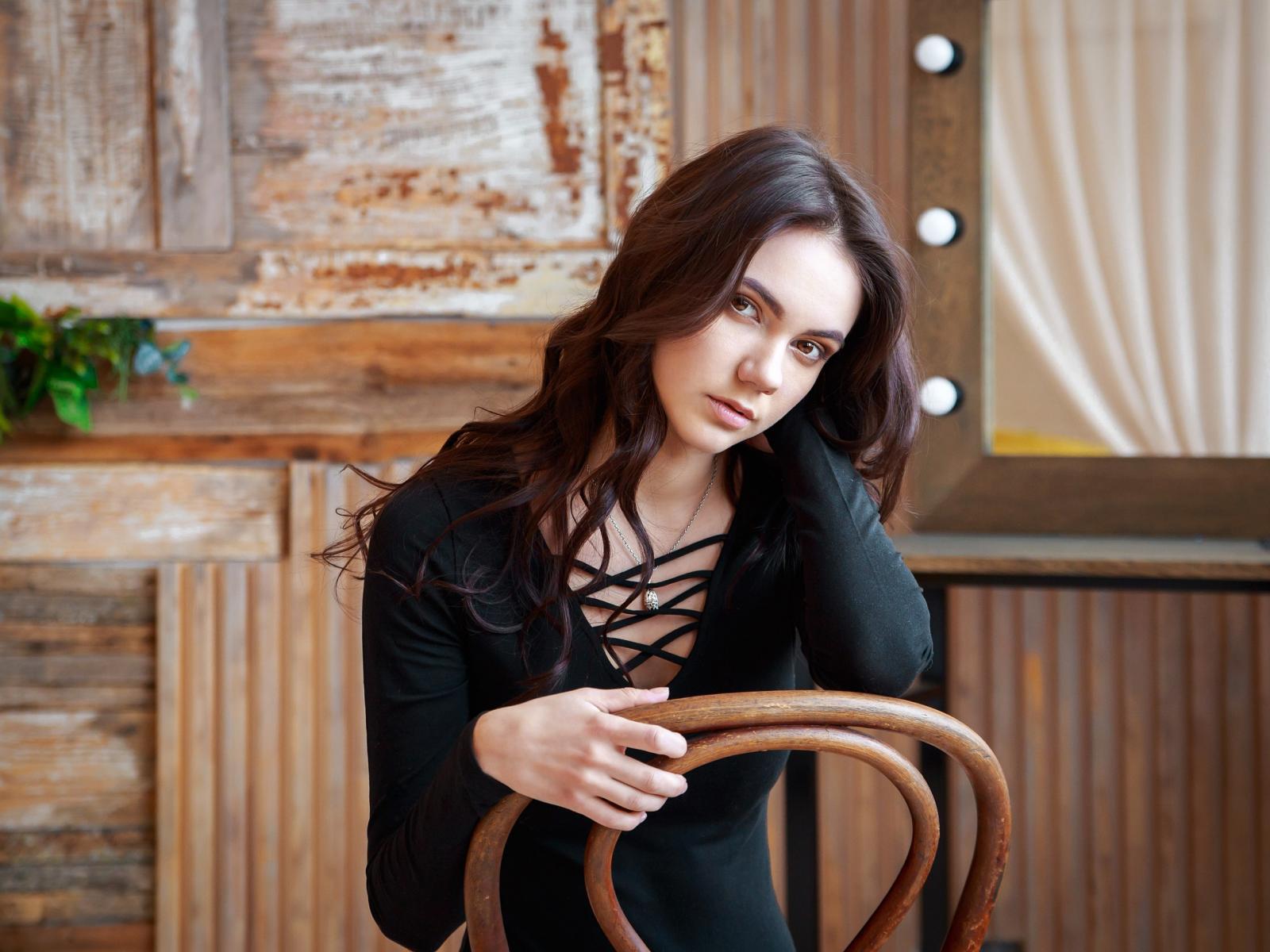 Wallpaper Beautiful brown-eyed girl sitting on a chair
