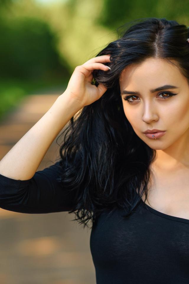 Wallpaper Beautiful young girl in black with a tattoo on her arm