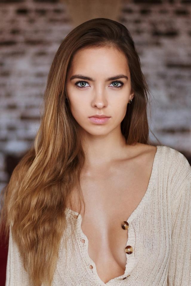 Wallpaper Beautiful young tender girl in a white sweater