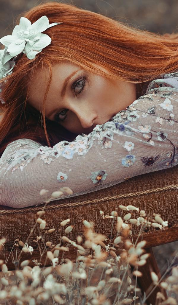 Wallpaper Beautiful red-haired girl lies on a chair