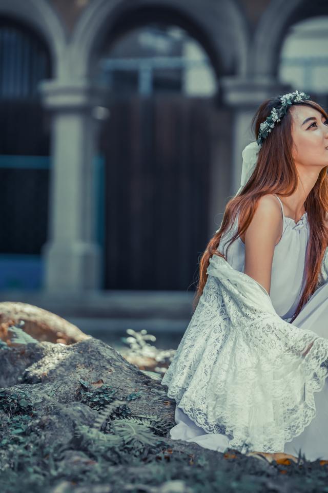 » Wallpaper Asian dreamy girl in white dress