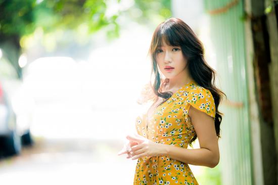 Wallpaper Beautiful Asian girl in a dress with a handbag