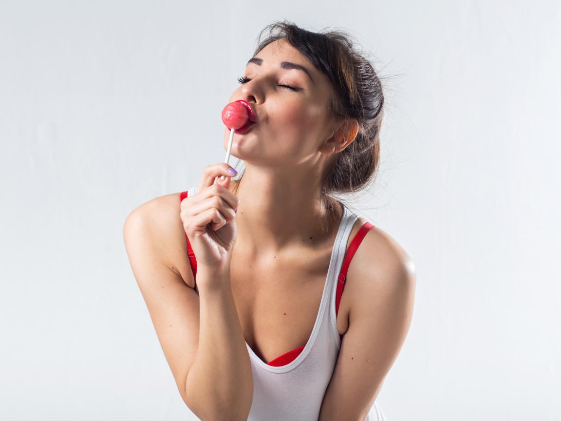 » Wallpaper Young girl with candy on a stick