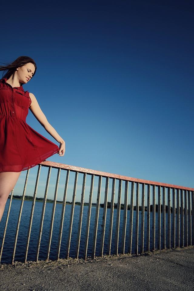 Wallpaper Girl in a short red dress on the bridge