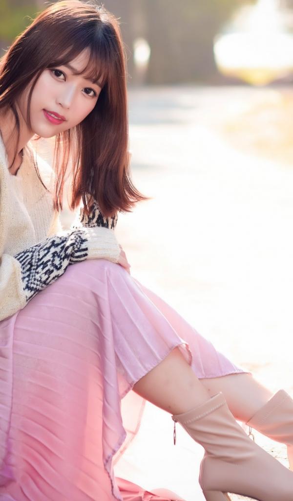Wallpaper Asian girl sitting on the ground