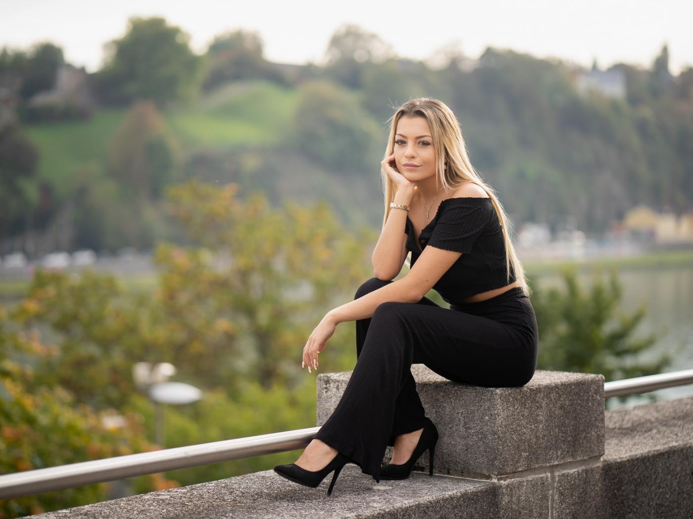 » Wallpaper Beautiful girl in black is sitting