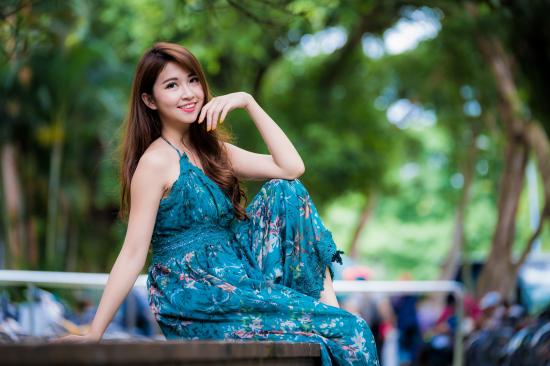 Wallpaper Asian young girl sitting on a bench in the park