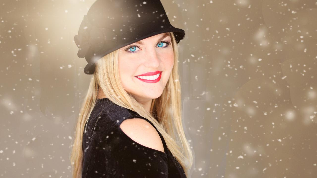 Wallpaper Smiling blue-eyed girl with a big gift in her hands