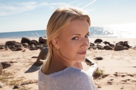 » Wallpaper Blonde with gray eyes on the ocean