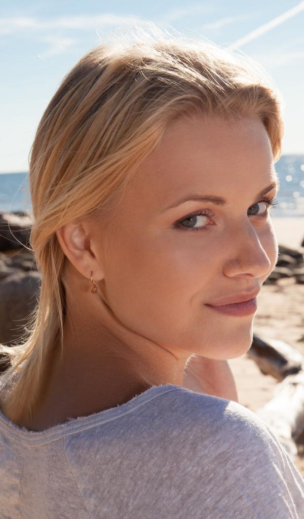 Wallpaper Beautiful smiling blonde on the beach near the ocean