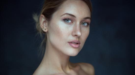 Wallpaper Tender green-eyed girl close-up