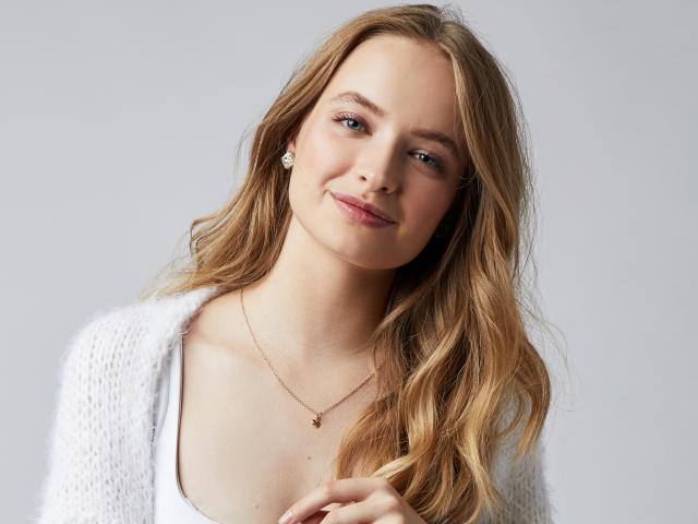 Wallpaper Gentle smiling blue-eyed girl on a gray background