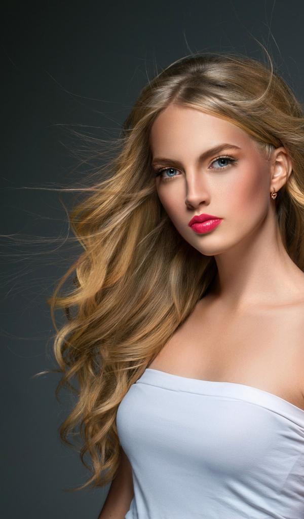 Wallpaper Young beautiful blue-eyed blonde on a gray background